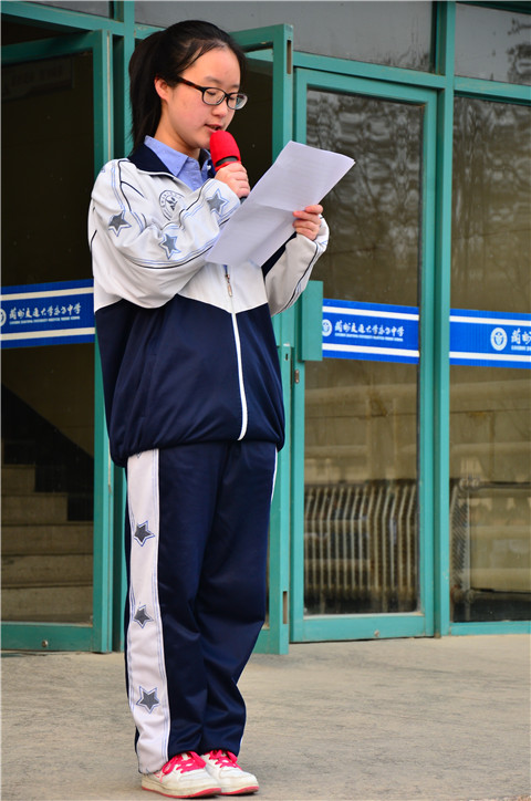 初二年级组组长朱晖老师,对上一周本年级组的工作进行了亮点点评。本周的国旗下演讲者是高三(6)班的学生代表陈启坤,她的演讲题目是《严以律己,宽以待人》。