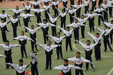 本次比赛共有48个班级参加。各班组织有序,对本次比赛都高度重视。比赛中,伴着明快、奔放的节奏,各年级各班依次进行了异彩纷呈的第三套广播体操“舞动青春”的表演展示,他们新颖别致的入场和出场仪式,丰富多变、各具特色的队形,舒缓流畅的动作,整齐划一的步伐与嘹亮的口号,饱满的精神和热情洋溢的风采相结合,分别配以个性鲜明的条幅,彰显着东方学子的创造性思维和对运动健与美的良好把握,体现了新时代青春年华的绚丽多彩和生机活力,展现了当代中学生积极向上、勇于拼搏和团结一致、开拓进取的时代精神,得到了老师们的充分肯定和赞扬。经过激烈角逐,初一(12)班、初二(3)班、初二(5)班、初三(10)班、高一(3)班、高二(2)班、高三(1)班共7个班级荣获一等奖,初一(4)班、初一(10)班、初二(1)班、初三(5)班、高一(6)班、高二(5)班、高三(3)班共7个班级荣获二等奖,初一(11)班、初二(8)班、初三(6)班共3个班级分享了三等奖的殊荣。出席观看本次大赛的学校领导为获奖班级颁发了奖状。