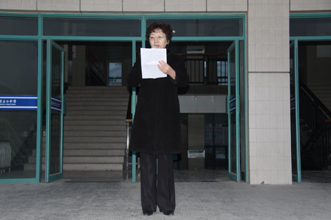 初一1班曹双凝同学正在进行国旗下演讲 |
