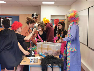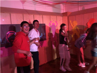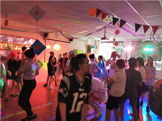 晚上的活动依然精彩,是同学们都很喜欢的男女换装舞会,老师帮忙给同学们化妆打扮,专业的音响师负责点燃大家的热情,大家尽情释放自己全身的能量,那场面怎一个嗨字了得。