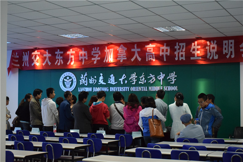 2016年4月24日,上午10点整,兰州东方加拿大高中在兰州交大东方中学教学楼二楼会议室举办了2016年招生说明会。在学生志愿者的引导下,各位新生及家长有序的进入会场,会场内座无虚席。本次招生说明会由来自10年级3班的海莹琦和11年级1班的韦智杰同学进行双语主持,在观赏了介绍学校概况和首届毕业生录取情况的短片之后,兰州东方加拿大高中校长Steve Olah介绍了我校招生要求。12年级的马娇和于洋两位同学分别用英语和中文介绍了在校三年的学习和生活情况,对学校三年来给予他们的帮助表示感谢。随后,学校专门邀请12年级家长代表李健先生谈一谈孩子在校三年的变化及家长的收获。兰州交大东方中学汤自安校长从家长的视角和教育者的高度向在场学生及家长分享了为什么要选择让孩子出国留学,为什么要选择兰州东方加拿大高中的原因。我校副校长何佳源女士介绍了2016年具体的招生安排。部分加方教师也参加了本次说明会,在场的有些同学大胆的和她们进行了交流。说明会最后,兰州东方加拿大高中加方代表张宏先生进行了现场答疑,解答了家长和学生最关心的问题。说明会过后,在场的学生与家长纷纷进行现场报名,领取了入学考试的准考证。