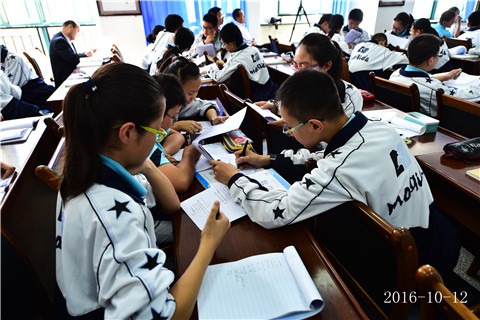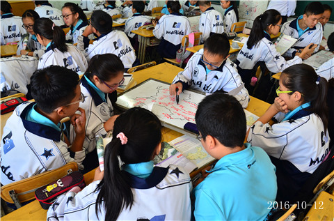 课堂上同学们参与热情高 教师更加注重学生个性思维的发挥 地理课堂上的师生互动 以小组为单位进行学习 课堂上的“小老师” 数学课上同学们认真解题 小组合作显得很重要