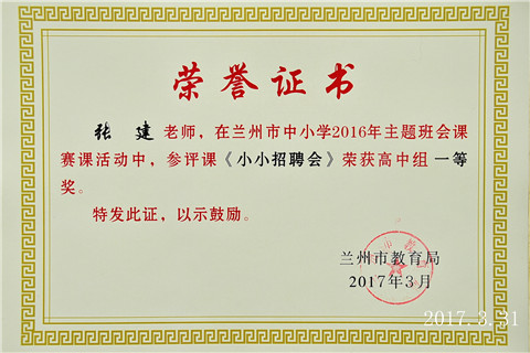 张建老师主题班会课《小小招聘会》荣获市级一等奖