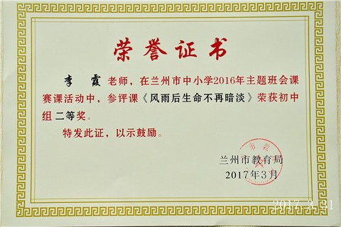 李霞老师主题班会课《风雨后生命不再暗淡》荣获市级二等奖