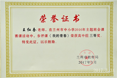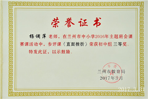 杨调萍老师主题班会课《直面挫折》荣获市级三等奖