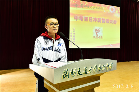 期望同学们将青春的豪迈和铮铮的誓言化作务实的行动去冲刺!去谱写东方中学新的篇章!奋战100天,给父母一个惊喜!奋战100天,给学校一个奇迹!奋战100天,给自己的未来一片光明! “长风破浪会有时,直挂云帆济沧海”。最后,祝愿同学们在4月12号的一诊中取得优异的成绩,让我们用灿烂的微笑去迎接我们美好的未来!