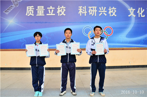 学生处桑老师在晨会上宣布我校学生在国庆期间参加的“2016年兰州市中小学生兵乓球比赛”中取得优异成绩的学生名单,我校李树伟等3名同学积极参赛,取得了优异成绩,俞吾源副校长对以上三名同学颁发荣誉证书进行表彰奖励。