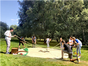 最后一个活动虽然不太费体力,但是非常有意思,也很考验大家的合作能力,还比较有难度,而小伙伴们似乎对这样的游戏更感兴趣,几人一个小集体很快就开始亲自体验了。