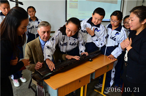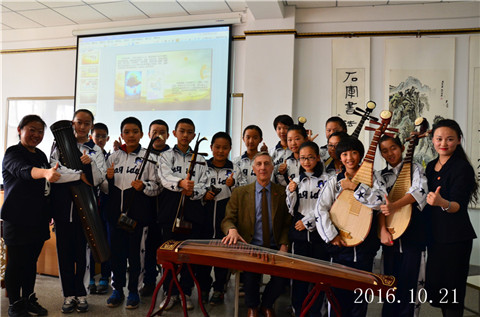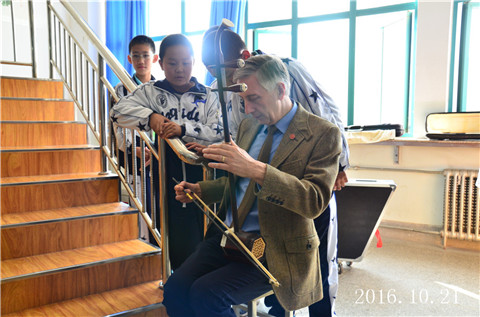 Lawrie院长走进音乐教室现场学习拉二胡