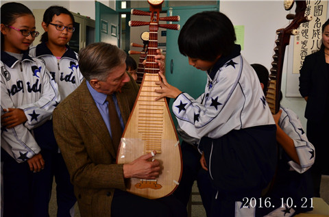 Lawrie院长跟我校学生现场合弹琵琶