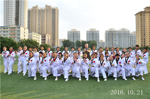 Lawrie院长与我校跆拳道班的学生合影