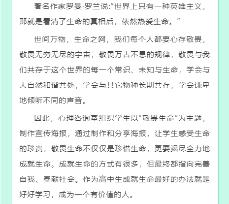 心存敬畏 行有所止 | 后疫情时代对高中生的生命意识教育