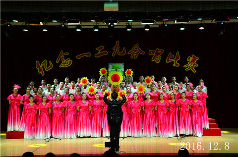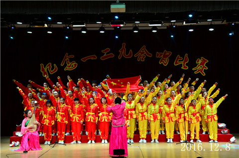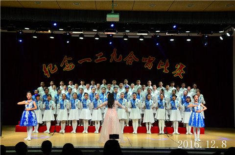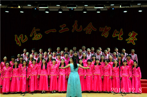 本校讯 昨天下午,初二年级组纪念“一二•九”歌咏比赛在五楼学生会堂举行。一千余名东方中学师生以及家长齐聚一堂,欣赏了本次演出。学校领导汤自安、马建荣、张兰周、俞吾源、苗蕊等同志出席了本次活动,今天还特别邀请到了初二年级家委会分会主任王丽萍女士观看演出。