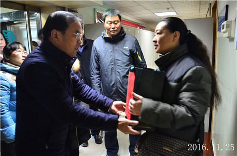 上午十一点,我校汤自安校长与学校教师代表带着全体师生的祝福与捐款,前往陆军总院探望田老师的家人。
