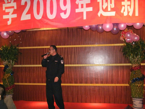 随后汤董事长和班校长向嘉宾及教职工敬酒,感谢社会各界在对东方中学的关心和支持,感谢各位教职工的辛勤付出;在喜迎2009年到来之际,衷心祝愿各位来宾新年吉祥、万事如意。安宁西路派出所谢警官代表特邀嘉宾用优美的歌声,表达了对东方中学的美好祝愿;东方中学音乐教师陈学卿以一首《我的太阳》送出了冬日的一片温暖,把联谊会推向了高潮,最后在轻松活泼的现场数字大抽奖活动中,东方中学2009年迎新联谊会圆满结束。
