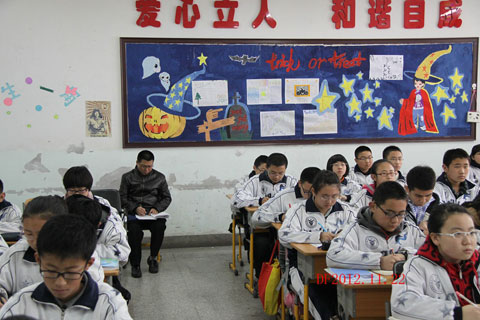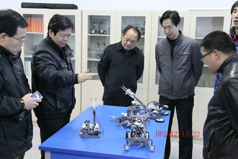 检查组首先分散深入到各个年级和班级进行了听课.接着在汤自安校长的陪同下检查组参观了我校的机器人探究工作室,电子控制室、设计与制造教室、劳技教室、学生会堂、展览室、荣誉室、实验室等。随后检查小组听取了我校的自评报告,并对我校的汇报材料、资料进行了认真细致地查看。