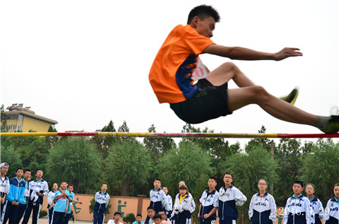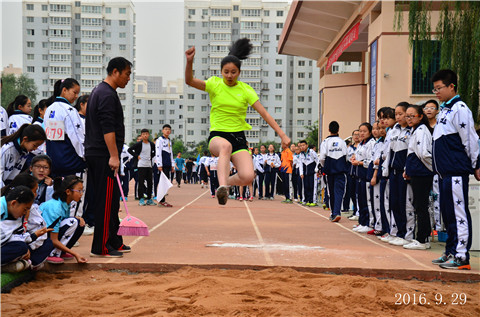 跳远场地,运动员们也个个摩拳擦掌,毫不示弱。起跳、踏板、纵身一跃,东方中学的运动健儿们个个都是好样的。