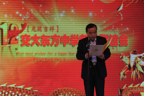 兰州交大东方中学联谊会在校董事会、校委会的大力支持和校办公室的精心策划下,于2011年12月31日15时28分,在安宁区马老六餐厅拉开了序幕。兰州市教科所所长黄平,兰州市公交公司第三客运公司薛谦忍经理、何慧军副经理、安宁区教育局党委书记朱红伟、安宁区教育局副局长李建民、施泽林、招商银行西站支行行长董岩等领导出席了新年联谊会。东方中学校长班宁、董事长汤自安教授先后发表了2012年新年贺词。