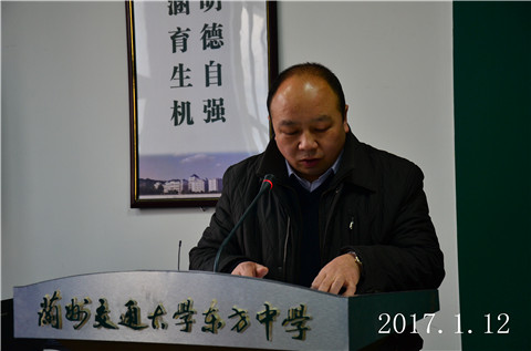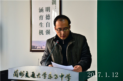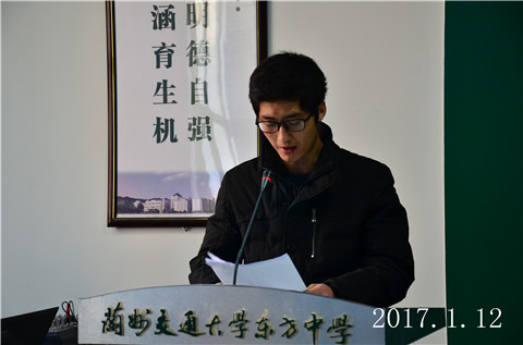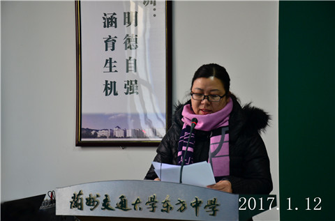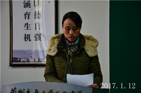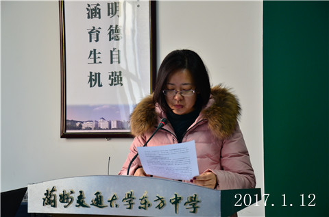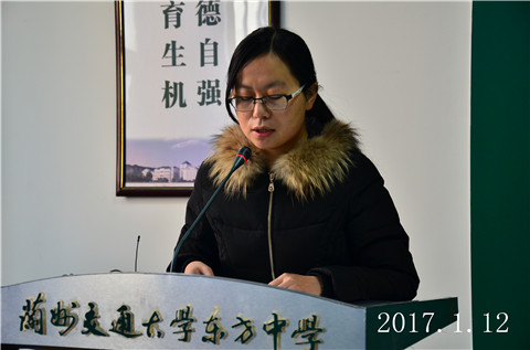 随后九位班主任代表一一上台进行述职发言,对自己在本学期班主任工作的心得体会做一分享。初一年级孙成老师讲了班级在本学期以来取得的成绩,强调了班上每一个孩子都为班级建设所做的贡献。高三年级的刘琳老师对备战2017年高考的孩子们说:“高考就是高高兴兴地去考试,考出高高的成绩”讲到心态很重要。初一年级的张晓琦老师将继续秉持自己严肃认真的工作作风对待下学期的教学工作。张亚鹏老师提到:“在班级管理中要让制度文化对无形文化作保障”。高二年级王红奎老师讲到:认真落实我校“互涵互育、自主自成”的班级文化建设,培养学生的学习习惯、提高学习能力,一直以来都是他在班主任工作中所坚持的。