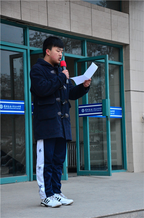 3月2日早上7:30分,随着《国歌》在校园里奏响,五星红旗缓缓上升。升旗仪式结束后,汤自安校长发表新学期致词,他说:“无论大家在过去的一年里成绩如何,新的学期就是一条崭新的起跑线,希望大家可以继续努力,奋勇前行。”初三(11)班王鸿钰同学发表题为《努力拼搏,我们正青春》的国旗下演讲,他说:“我们寒窗苦读为的就是把信念点燃,虽然很苦,但披星戴月为的就是拥有灿烂的明天!”