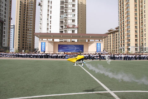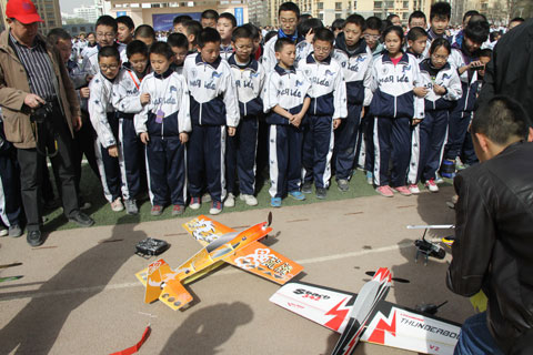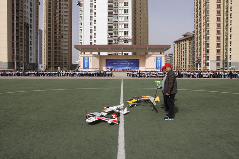 兰铁一中航模表演队 航模飞机表演引起学生们的极大兴趣 航模表演 校领导和兰铁一中老师合影