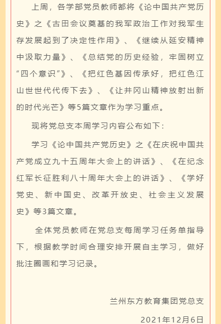 兰州东方教育集团持续推进党史学习教育与研究(六)