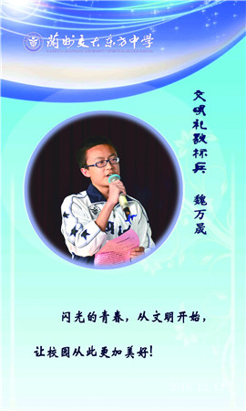 当社会各届人士积极投身于创建文明城市的时候,作为一名学生,我们怎能置之度外?自然,创建文明校园是我们每个学生义不容辞的责任。