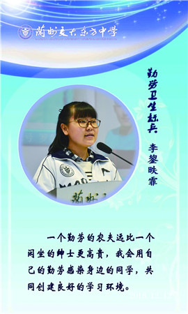 团结同学,珍视友谊,互相包容,和谐相处 关心同学,真诚待人,友爱互助,共同进步 校园学生标兵——同学们学习的好榜样 不给他人添麻烦,做文明有礼的东方人