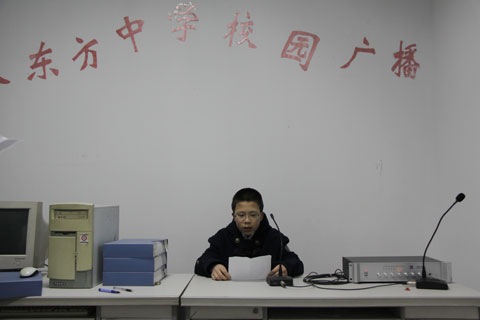 初一2班葛瀚森同学正在进行国旗下演讲 |