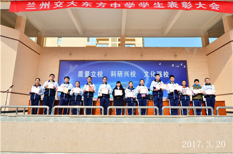 本校讯 为表彰先进、树立典型,鼓励更多学生积极进取,不断提高自身综合素质,兰州交大东方中学于今日举行学生表彰大会。分别授予蒲相彤等72名学生“优秀班干部”荣誉称号;分别授予苏萱等19名学生“优秀学生干部”荣誉称号;分别授予张媛祯等8名学生“优秀广播员”荣誉称号;分别授予郭晓语等28名学生“优秀住宿生”荣誉称号。