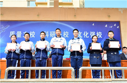 学校领导出席表彰大会并为获奖学生颁发荣誉证书