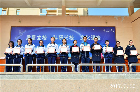 希望受到表彰的同学珍惜荣誉、发扬成绩、继续努力,同时希望全体同学以受到表彰的同学为榜样,刻苦学习、奋力拼搏,成为德、智、体全面发展的优秀中学生。