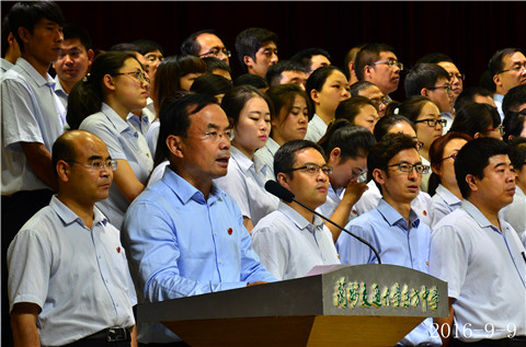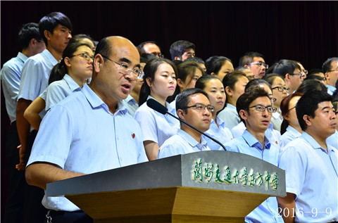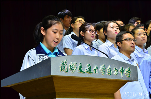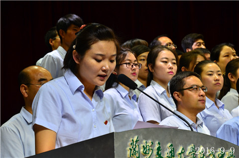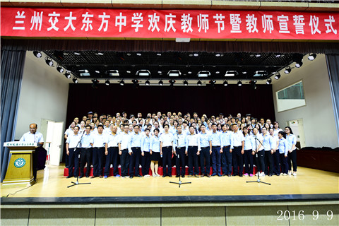 教师节前一天,来自兰州交大东方中学的全体教师在校学生会堂宣誓: