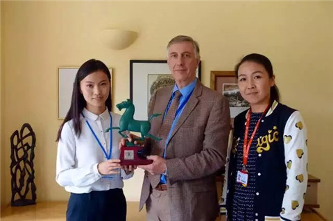 我校教师代表向克莱尔学院院长赠送“马踏飞燕”