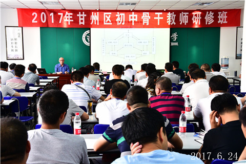 本校讯 6月24日,2017年甘州区初中骨干教师研修培训在兰州交大东方中学举行。上午八点,研修培训在我校综合楼二楼会议室正式拉开帷幕,首先组织召开了开班仪式,省教科所齐志勇副所长、原兰州一中校长白春永等相关领导和全体参训学员出席了开班仪式。随后原兰州一中白春永校长做了《学科创新能力与专业发展》为主题的专题讲座。