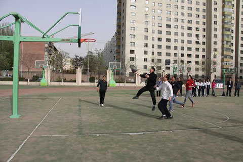 在2013年4月8号下午进行的高二年级组对行政组的比赛中各位老师积极拼抢比赛十分精彩,汤校长也参与其中,小试牛刀。下面,让我们一起来看看比赛盛况吧!