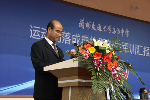 我校运动场的落成,标志着我校的办学条件,又上了一个新的台阶,是我校高度重视素质教育、完善基础设施、改善办学条件、优化育人环境、提高办学水平过程中的大事和喜事,这必将有力地提升我校的综合办学能力,为促进学生全面发展提供了广阔的平台。而同学们精彩的军事汇报表演和文体表演也是学校落实素质教育的具体行动的展现,此次庆典活动更是对同学们身心素质和体育运动水平以及精神风貌的一次大检阅。