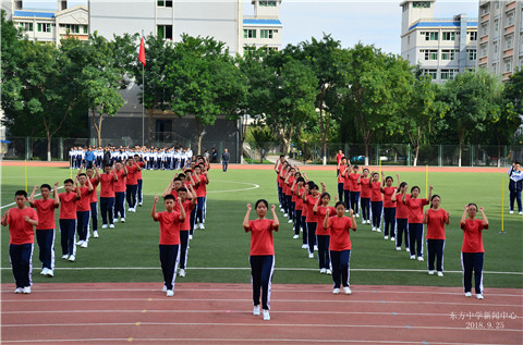 学校每年举办这样的比赛,不仅提高了同学们的做操水平,还进一步增强了学生集体荣誉感和组织纪律性,充分展示了东方中学学子的勤奋好学、团结向上的精神风貌,达到了“我运动,我健康,我快乐”的目的。