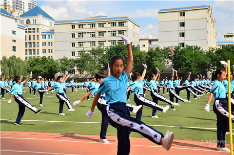 全校师生高度重视,各班开学以来就充分利用体育课、大课间及课外活动的时间,从进退场到每一节操的每一个细微动作等方面,积极组织学生训练。