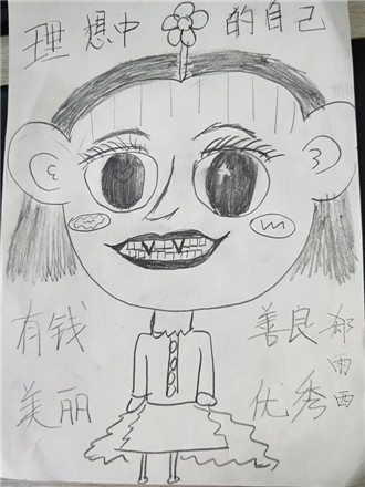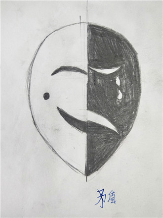 在老师布置任务后,学生们都积极投入到自我画像中,10分钟后,大部分同学完成了自我画像,这些画的内容非常丰富,表现形式也是新颖别致。同学们画出的自画像风格不一,形式多样,有的用卡通画法,有的用漫画法,有的用白描法。总之,每个人都通过“自画像”的方式向他人展示了一个自己心目中的“我”。这可能是一个“公开的我”,也可能是一个“隐藏的我”。