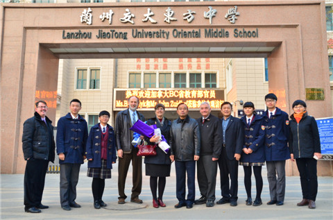 11月26日加拿大BC省教育部官员Ms. Bev Pulyk和Mr. John Zuidhon莅临兰州东方加拿大高中进行为期两天的教学工作及教育管理的年度检查和审核工作。兰州交通大学东方中学汤自安校长、兰州东方加拿大高中校长Mr. Olah 及全校师生共同迎接他们的到来,学生代表奉上鲜花对他们的到来致以热烈的欢迎!