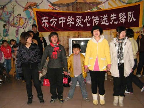据福利院耿部长介绍,这里的孩子们有的是被父母遗弃的病残儿童,有的是因车祸等原因失去父母的孤儿,但是这些孩子在社会各界的关心下,逐渐树立了对生活的信心,并且决心要做一个对社会有用的人,其中有几个孩子通过自己的努力考上了大学,还有一些孩子也走上了工作岗位,用自己的努力去回报社会……同学们都被福利院的孩子这种积极乐观、自强不息的精神所感染。随后丰富多彩的文艺表演开始了,我校同学们与孤儿院的孩子们齐声高唱《北京欢迎你》等歌曲,现场春意融融。