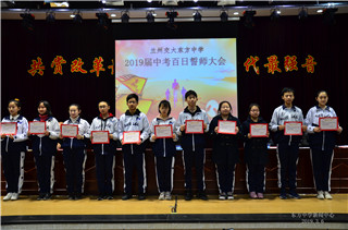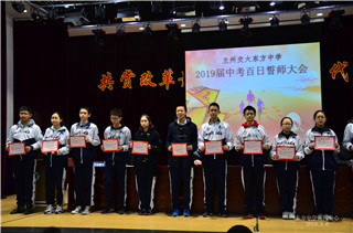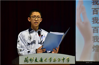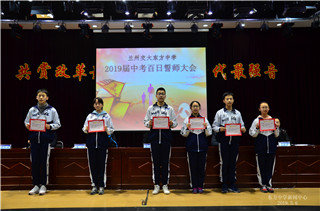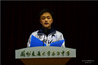 在2019届全体初三学子冲刺决胜之际,汤自安校长给所有初三学子送上祝愿,希望全体同学科学安排时间,严格执行备考计划;培养良好的答题习惯,提高答题效率;处理好与家长、老师和同学间的关系,常怀感恩之心;希望全体同学选择一所适合自己的高中,发扬东方精神,树立必胜决心。家长代表、教师代表、学生代表分别发言,希望与全体同学一起,做到科学规划,共同努力,砥砺前行,为明天、为自己冲刺。