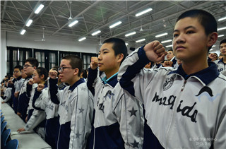 全体初三学生在学生代表的带领下全体宣誓:“百日冲刺,一切从零开始!我们定会无所畏惧,挑战极限!百日冲刺,一切精益求精!我们定会……”铮铮誓言,催人奋进,激励初三学子奋勇拼搏,坚持到底,幸福是奋斗出来的,奋斗的青春最美丽!