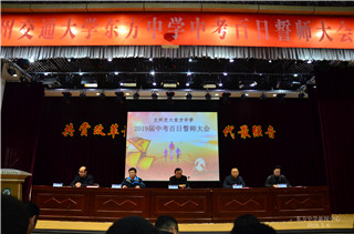 本校讯 3月6日下午,东方中学2019届初三中考百日冲刺誓师大会在学生礼堂隆重举行,活动得到学校领导的大力支持。汤自安校长等校委会领导出席了大会,给初三年级全体师生加油打气,参加大会的还有初三年级全体师生和学生家长。大会由俞吾源副校长主持。